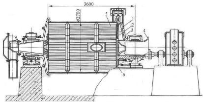 格子型球磨機主要是由進料器、出料器、端蓋、法蘭盤、筒體、中心襯板(格子板)、大齒輪、傳動總成(減速機、小齒輪、聯(lián)軸器、電機)等部件組成。格子型球磨機的格子板,一般使用高錳鋼耐磨料制作,耐磨性好,但成本較高。格子型球磨機結構如下圖: